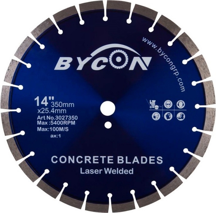 Алмазный диск Bycon Laser Uni-15 350 мм (Байкон Лазер Уни-15 350 мм) применяются, как правило, на бензорезах, электрических резчиках, камнерезных станках, стенорезных машинах, швонарезчиках. Обрабатываемые материалы: бетон, железобетон, гранит, природный камень, черепица, клинкерный кирпич (клинкер) и другие материалы.
