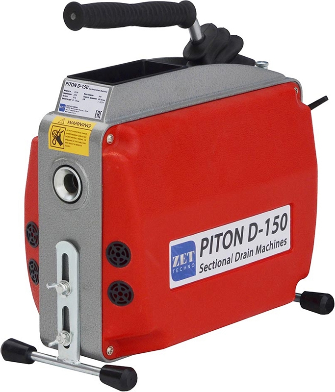 Электромеханический секционный прочистной аппарат для канализации Piton D-150 (Питон Д-150) – электромеханическая секционная прочистная машина для прочистки канализационных труб Ø 15 – 150 мм, длиной до 60 м; очистки внутренних и наружных сетей канализации и водоснабжения, водосточных труб, дымоходов; для широкого круга потребителей от домовладельцев до профессиональных подрядчиков и служб ЖКХ.