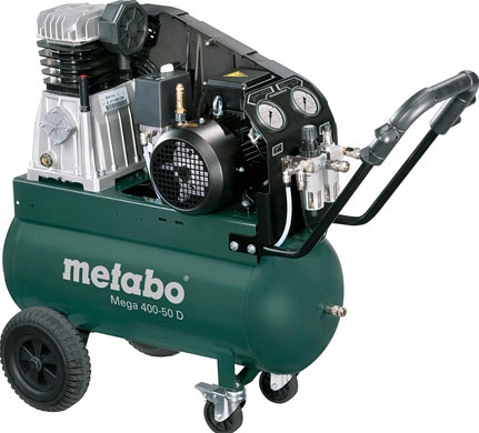 Мощный поршневой ременной компрессор Metabo Mega 400-50 D (Метабо Мега 400-50 Д) с масляной смазкой предназначен для использования в трехфазной сети 380 В, подходит для работы в сложных условиях в промышленных масштабах.