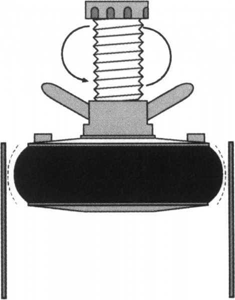 - Уплотнительное кольцо из нейлона между 2-мя блинами на штоке с резьбой и прижимом