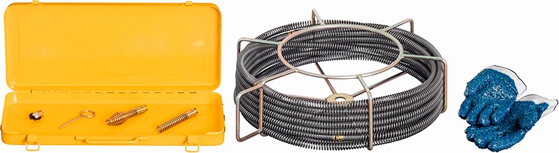 Сверхгибкие для легкой тяги даже в тесных трубах. Быстрым соединением молниеносно удлиняются и сокращаются. Т-образный паз с защитной блокировкой. Ручная подача. Спираль для чистки труб, стандартная для универсальных работ, сверхгибкая, специальная спираль предназначена для узких или нескольких следующих друг за другом изгибов труб. Спираль для прочистки трубы S с толстой специальной проволокой для особенно тяжело устраняемых засоров, например, для разрезания корней. Привод Кобра 22 или для приводов других производителей. - Зажимы для спиралей: