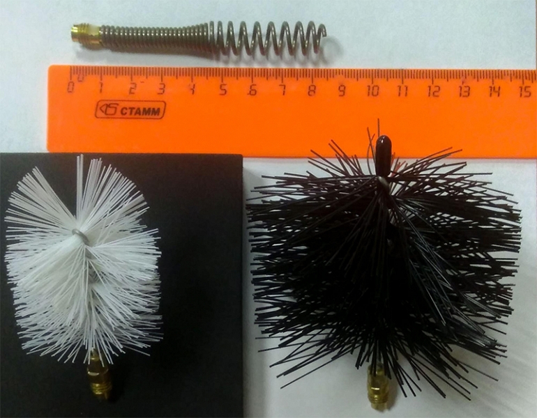 - Большой нейлоновый ершик для профилактики в чугунных трубах, а также чистки несложных систем вентиляции и дымоходов Ø до 100 мм