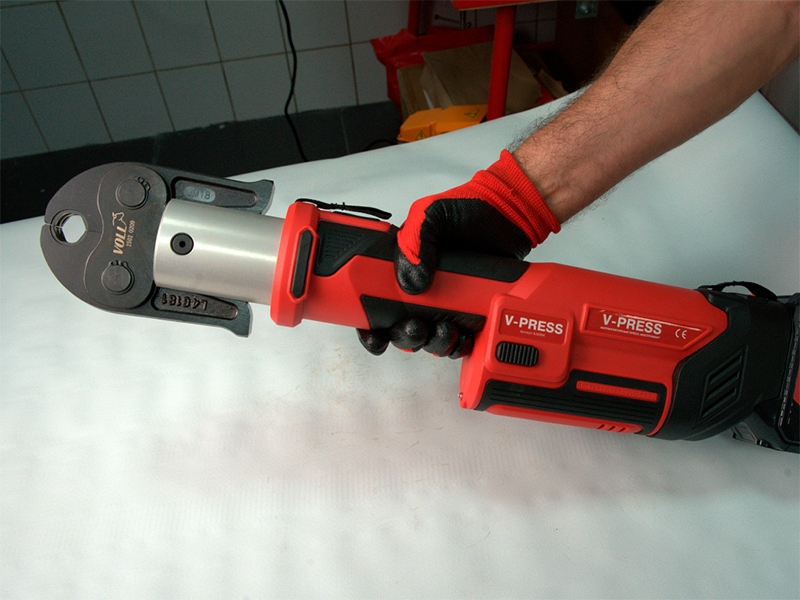 Пресс-клещи Voll M 18 (Волл М 18) предназначены для радиального обжима (радиальной опрессовки) фитингов на медных, тонкостенных стальных, нержавеющих стальных трубах Ø 18 мм аккумуляторным гидравлическим радиальным пресс-инструментом для обжима фитингов Voll V-Press.