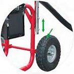 - Надувные прочные пневматические колеса существенно облегчают перемещение и транспортировку: для эксплуатации необходим всего 1 оператор
