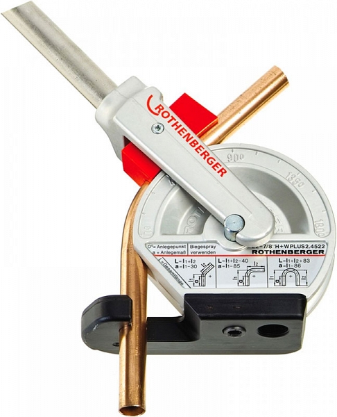 Ручной трубогиб Rothenberger Robend H+W Plus 19 мм (3/4") (Ротенбергер Робенд Х+В Плюс 19 мм (3/4")) предназначен для точной холодной гибки на угол до 180° мягких, твердых и тонкостенных медных труб, медных труб в оболочке, алюминиевых труб, латунных труб, тонкостенных стальных труб, тонкостенных стальных труб в оболочке, бесшовных нержавеющих стальных труб Ø 19 мм (3/4") при монтаже сантехнических и холодильных систем, систем отопления и кондиционирования, а также на производствах.
