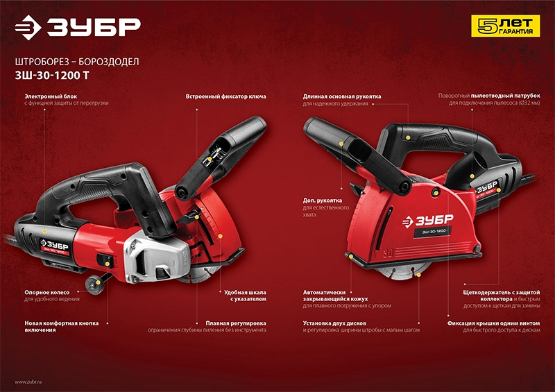 Преимущества штробореза Зубр Мастер ЗШ-30-1200 Т: