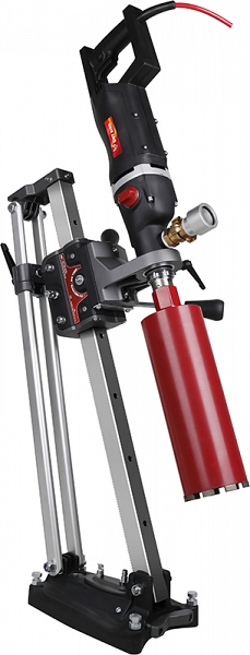 Станина для алмазного сверления с микроударом Bycon DBS-162 (Байкон ДБС-162) – сверхнадежная новейшая стойка для алмазного бурения c анкерно-вакуумным основанием, быстросъемным креплением двигателя для сверления отверстий Ø до 252 мм, в том числе и с микроударом.