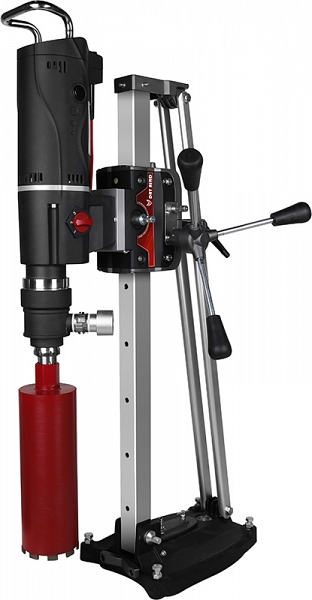 Станина для алмазного сверления с микроударом Bycon DBS-352 (Байкон ДБС-352) – сверхнадежная новейшая стойка для алмазного бурения c анкерно-вакуумным основанием, транспортировочными колесами, быстросъемным креплением двигателя для сверления отверстий Ø до 352 мм, в том числе и с микроударом.
