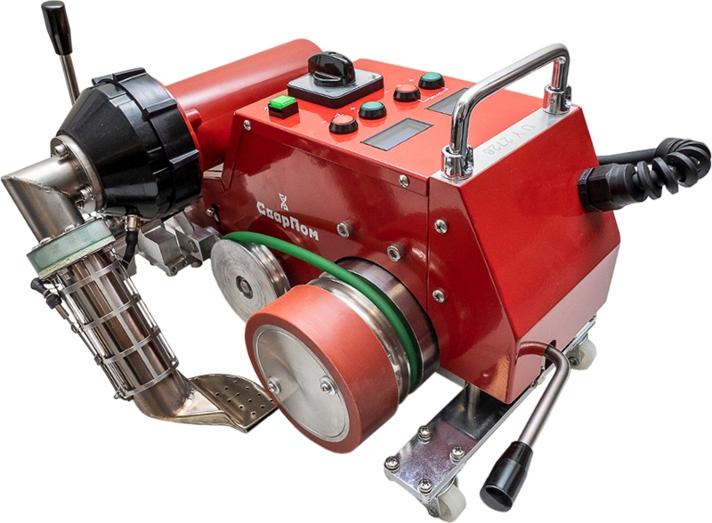 Сварочный автомат горячего воздуха СварПом СП51 20 мм (SvarPom SP51 20 mm) – автоматический сварочный аппарат горячего воздуха для эффективной сварки внахлест горячим воздухом технических ПВХ-тканей и полимерных пленок при производстве всевозможных тентовых и баннерных конструкций (укрывных тентов, автомобильных тентов, павильонов, укрывных пленок для сельского хозяйства и строительства, биотопов, бассейнов, промышленных завес, рекламных баннеров и т.д.).
