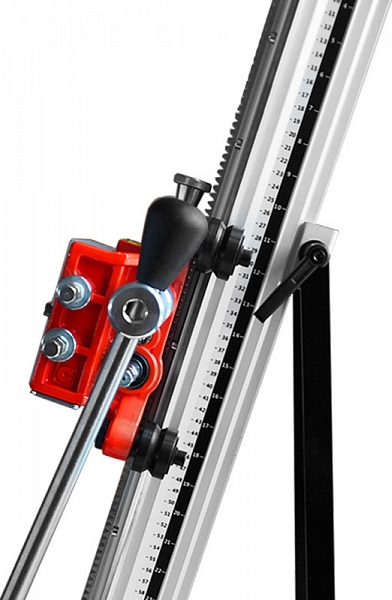 - Алюминиевая станина (стойка) с основанием и электродвигатель, закрепленный на рабочей каретке с двухскоростным редуктором, которая перемещается по стойке с помощью стальной зубчатой рейки