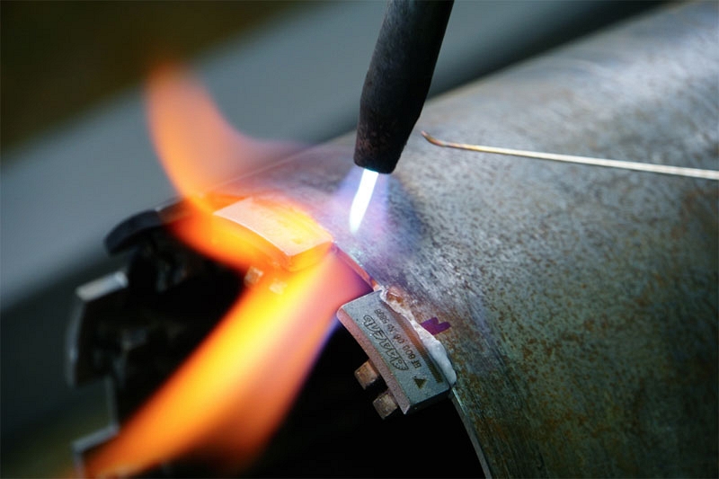 - Процесс напайки новых алмазных сегментов при постоянном контроле температурного режима